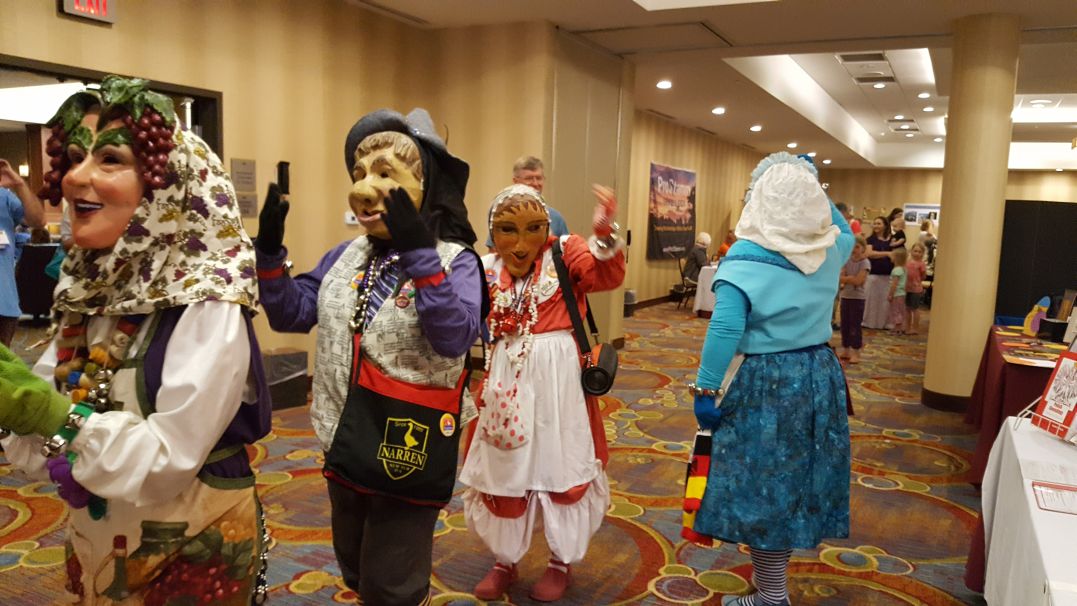 Given all that salient detail, not one New Ulm enthusiast bothered to warn me about the four masked characters who came dancing through the vendor area late in the afternoon. I felt both attraction and revulsion at the sight of them (masks have always freaked me out). The two little girls who joined in the fun earned a gold star for bravery, in my opinion. It wasn’t until the dance was over and one of the masked figures handed me a button that I learned these were the Narren of New Ulm, “the relatives everyone has, but nobody wants to own.” Needless to say, I’m leaving the light on when I go to bed tonight.